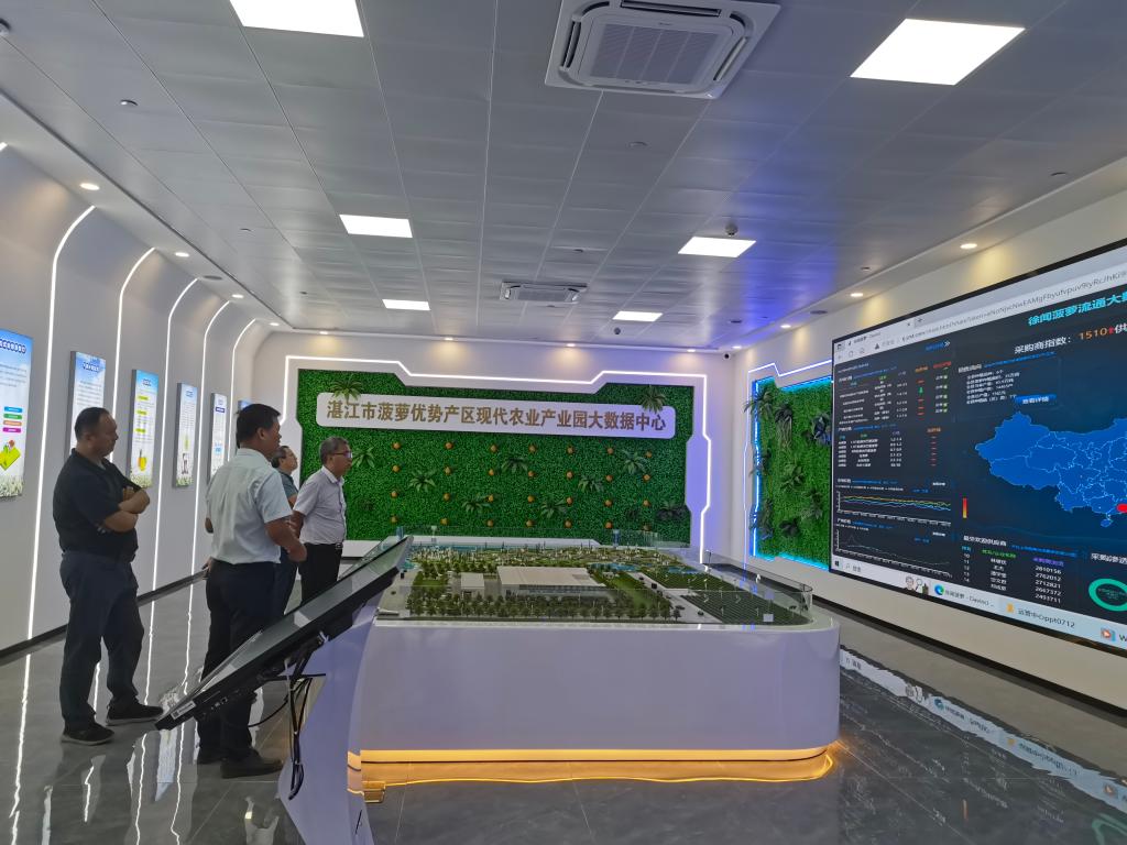 当天下午,课题组一行还来到徐闻县连香农产品农民专业合作社,实地调研考察菠萝种植、储存、流通、加工及销售情况。来到广东菠萝跨县集群产业园(湛江垦区),实地参观湛江市菠萝优势产区现代农业产业园大数据中心和生产车间。一行对企业积极探索菠萝深加工技术,全力加强品牌建设,以数字赋能推动菠萝产业发展表示充分肯定,并在菠萝良种培育推广、种植技术、拉长精深加工产业链、加快菠萝现代农业产业园建设等方面提出了具体指导意见。
