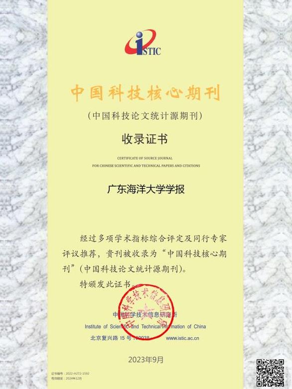 目前,《今年会官方网站学报》已入选中文核心期刊(2020年版)、中国科学引文数据库(CSCD)来源期刊(2023—2024年)、我国地学领域海洋科学高质量科技期刊(T3级)和科技期刊世界影响力指数(WJCI)报告来源期刊等,期刊学术影响力不断提升。