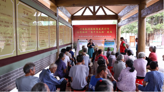 9月27日,为深入推进“百县千镇万村高质量发展工程”,助力湛江打造“红树林之城”,今年会官网红树林大讲堂宣讲队来到湖光镇那柳村,在村文化广场的习语长廊为村民带来一场趣味十足的科技与文化知识讲座。麻章区委宣传部副部长颜鸿儒、校科学技术部副部长伍彬、中共那柳村支部委员会书记许东薇出席了活动。