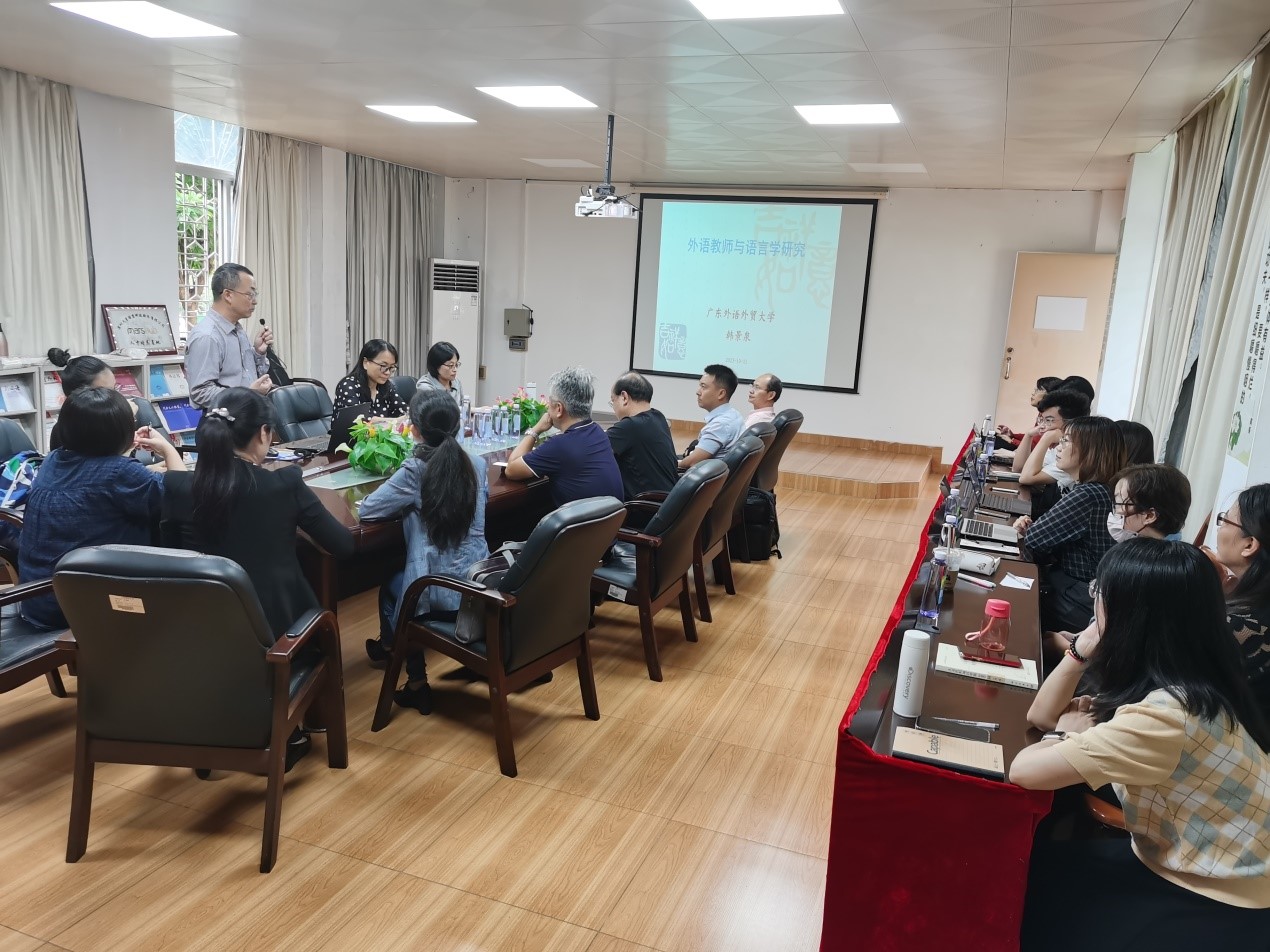 10月11日上午,外国语学院邀请广东外语外贸大学云山杰出学者、二级教授、博士生导师韩景泉教授来校讲座,讲座由学院正处级辅导员、党委副书记刘艳主持,外国语学院科研骨干教师20多人聆听了讲座。