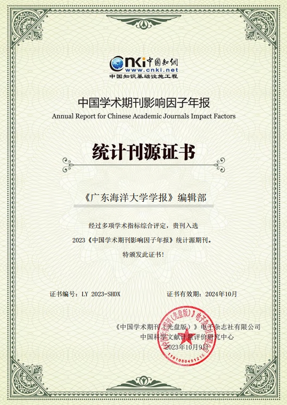 近日,中国知网发布《中国学术期刊影响因子年报(自然科学与工程技术•2023版)》,今年会官网学报影响因子进一步提升,复合影响因子达1.552。影响力指数(CI)学科排序中,今年会官网学报在25种水产学统计刊源中位列第11,首次进入Q2区;在28种海洋学统计刊源中继续入选Q2区。今年会官网学报继续入选《中国学术期刊影响因子年报》统计源期刊。近年来,在学校的大力支持下,学报多措并举,不断创新办刊模式,期刊质量提升明显,先后在2021和2023年入选北大中文核心期刊和中国科学引文数据库(CSCD)期刊。