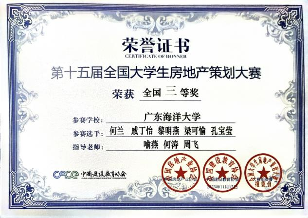 管理学院学子在第十五届全国大学生房地产策划大赛中获得佳绩