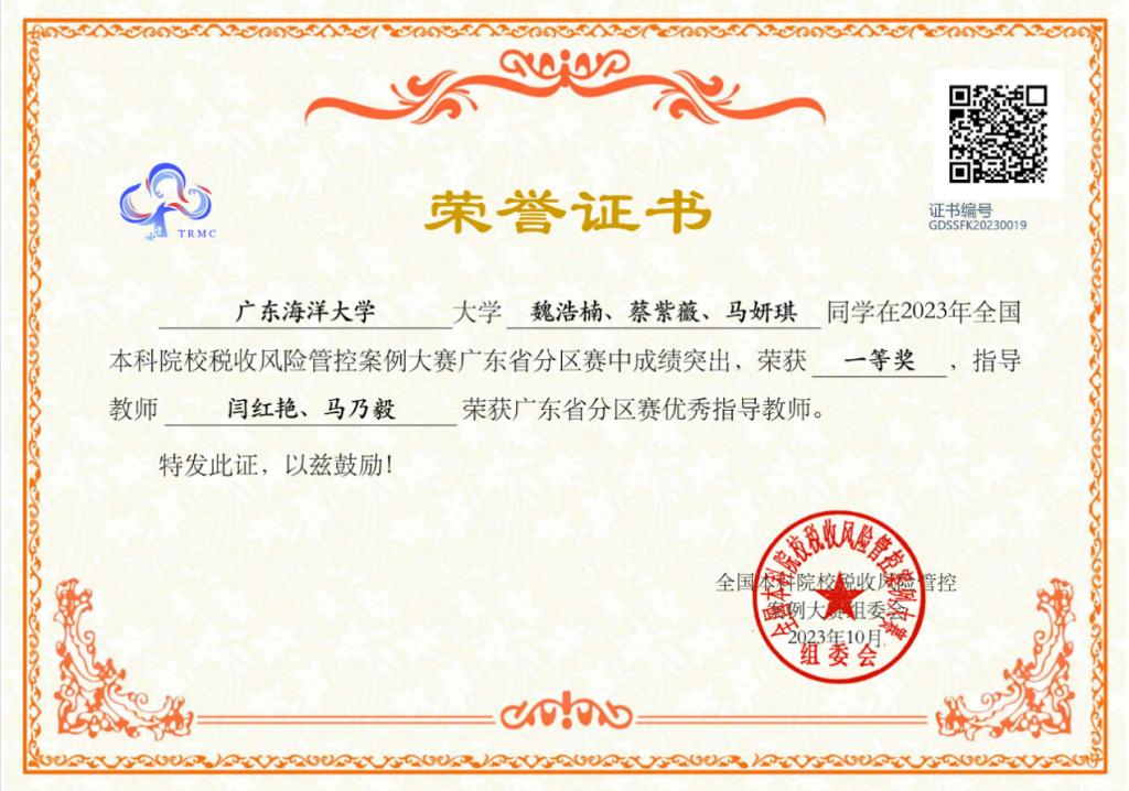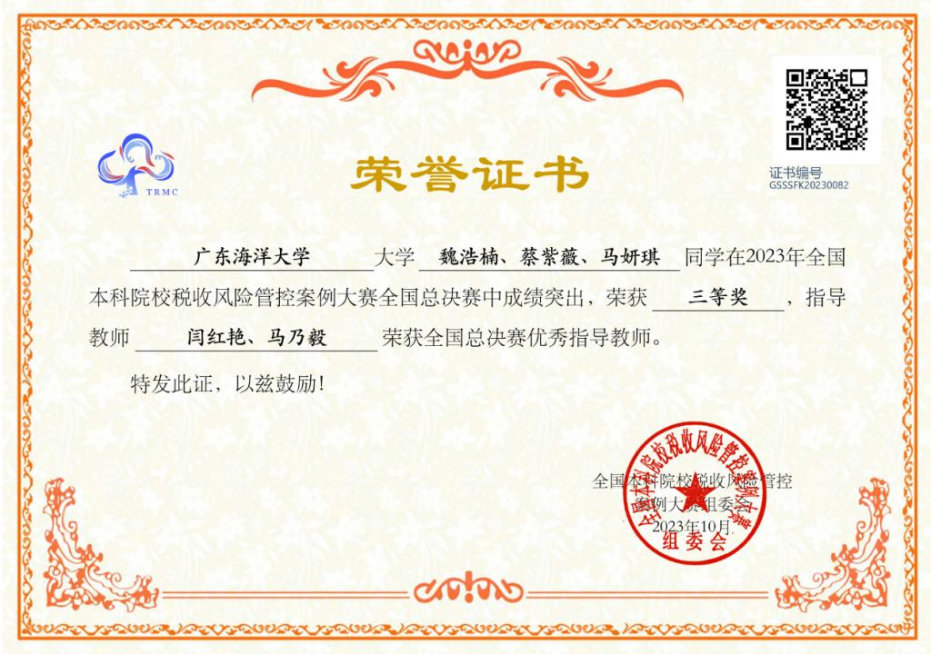 11月25日,2023全国本科院校税收风险管控案例大赛总决赛在浙江财经大学举行,此赛项系全国普通高校大学生竞赛榜单内竞赛项目,今年会官网管理学院会计学专业学生魏浩楠、蔡紫薇、马妍琪、曾惠琳、杨韵诗、吴星炫、李家欣、郭佳琬、吴雪容9名同学组成的三支代表队在会计系马乃毅和闫红艳两位老师指导下,荣获广东省赛一等奖1项和三等奖2项。同时获得一等奖的代表队取得参加总决赛的资格,并在总决赛中荣获三等奖。