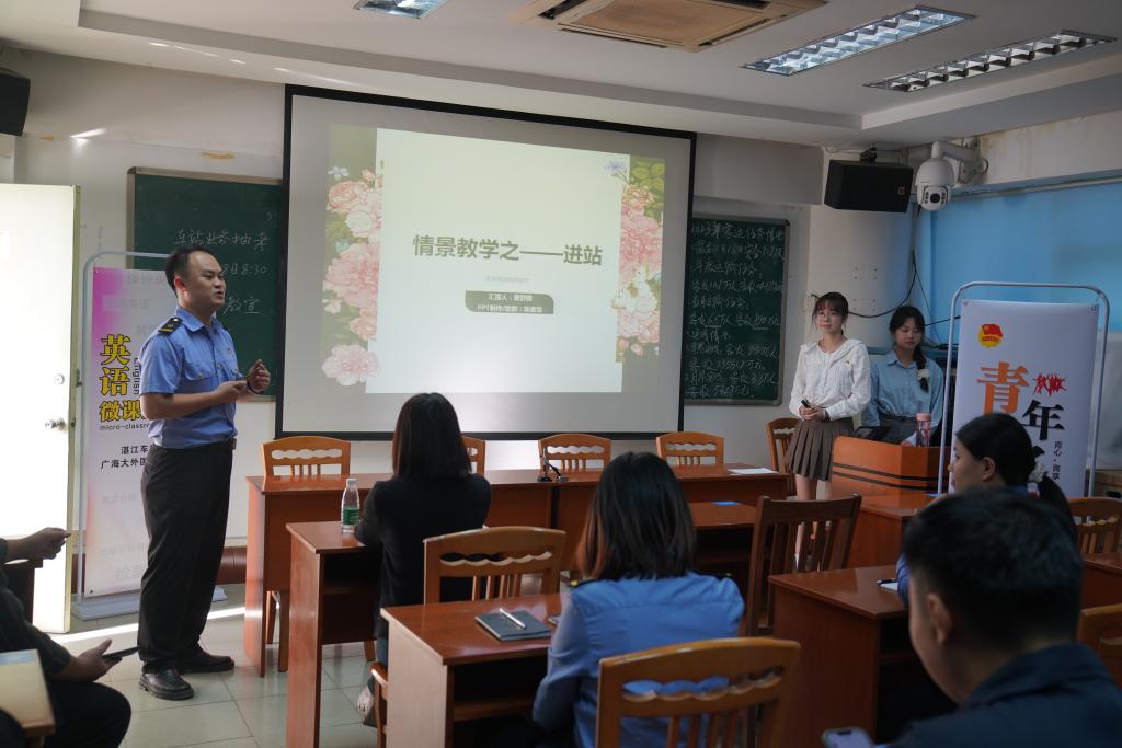 湛江车站位于中国大陆最南端,被誉为祖国铁路的“南大门”,是“一带一路”的重要运输通道。在尚未开通高铁时,湛江站发挥着举足轻重的作用,是推动沿线周边经济发展、促进贸易、拉动人口的重要枢纽。本次联创共建活动在为湛江车站青年职工进行英语口语强化的培训中,把学生党员的外语专业知识与提升窗口单位社会服务能力有机结合,是外国语学院党委扎实推动主题教育走深走实,把党建与人才培养、社会服务等深度融合的具体行动。学院将发挥外语专业优势,在湛江的基础教育、政企发展、文化传播、海洋产业振兴中不断担当作为。