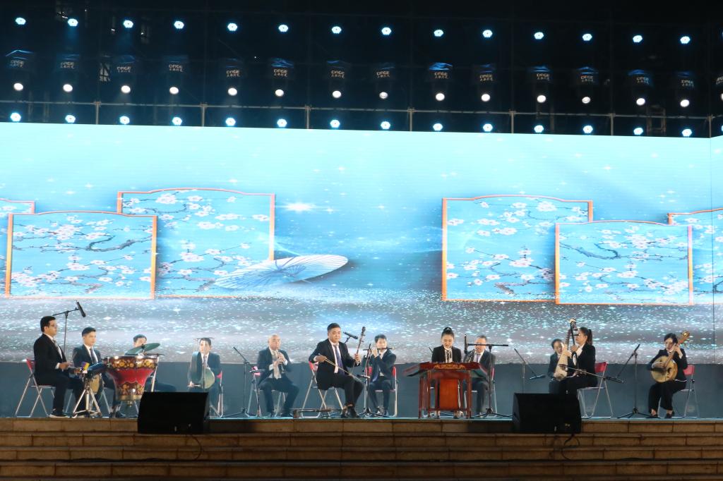 晚会在戏曲表演《梨园群英贺盛世》中拉开序幕,表演者齐声祝贺祖国繁荣昌盛、国泰民安。民乐联奏将龙舟赛场的激烈与动感、旱情缓解的愉悦与轻松、对未来的期许与信念、胜利和欢庆的振奋人心融为一体。《吕布试马》重现了历史上吕布的英勇善战以及赤兔马的迅捷威猛。戏曲行当展示中,演员们通过诠释不同角色的个性与魅力,生动展现了戏曲这一中华艺术瑰宝。《双枪陆文龙》选段给现场观众带来了巨大的震撼。最后,演出在《龙腾虎跃庆升平》的精彩表演中落下帷幕。整场戏曲古今融合,音色清脆明亮,节奏欢快活泼,岭南特色韵味洋溢整个晚会。晚会结束后,不少同学争相上台与演员们合影交流。