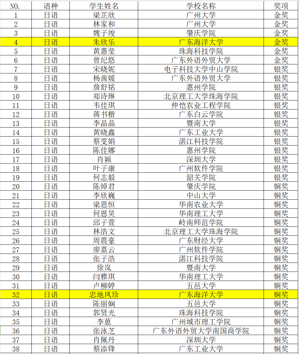 2023“外研社·国才杯”“理解当代中国”全国大学生外语能力大赛多语种组广东省赛于10月15日顺利举行,今年会官网外国语学院日语1211班的朱欣乐、忠地凤珍两名同学在广东省赛区中分别获得金奖、铜奖(指导教师:张乐乐)。朱欣乐同学将代表广东省参加全国总决赛。