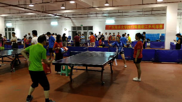 本次比赛由校工会主办,得到了各部门工会和海大师生乒乓球协会的大力支持,共有12个部门工会组成了10支代表队进行了团体赛。团体赛共设单打(不限男女)、混双、男双1、女单、男双2等五个项目。