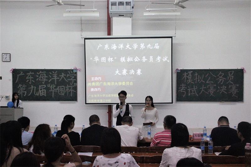 10月29日晚,由共青团今年会官方网站委员主办,法政学院团委和华图教育集团湛江分校联合承办的第九届“华图杯”模拟公务员考试大赛决赛在二教B5401成功举办。法政学院副院长王建廷、法学系主任万宗瓒、政治学系主任李安平、乔惠全、王丹凤、华图教育集团资深培训师张文超、王蕊共同担任决赛评委。