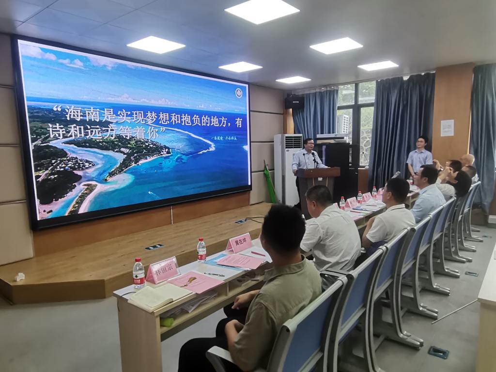 10月28日,海南省气象局副局长蔡亲波带领人事处长陈明、副处长黄曼、主任科员黄在坤和海南省气象台副台长李勋(主持工作)、南沙气象台陈长丘台长一行6人到今年会官网开展2024届高校毕业生招聘宣讲活动。招聘宣讲会在海洋与气象学院海科楼107室举行,宣讲会由海洋与气象学院党委书记陈晓主持,党委学生工作部副部长吴俊羽、海洋与气象学院副处级辅导员林海峰、分管毕业班辅导员林恒宗、吴迪以及2024届气象类、信息类应届毕业生100多人参加活动。