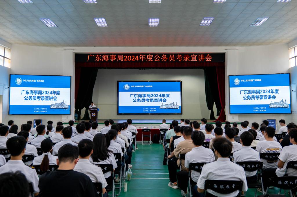 与会人员集中观看了广东海事局宣传片,全方位了解了广东海事局履行水上交通安全监督管理、船舶及相关水上设施检验和登记、防治船舶污染和航海保障等行政管理和执法职责的有关情况。宣讲员详细介绍了2024年度公务员招录招聘计划,职位和岗位设置、专业需求、工作职责等情况。在广东海事系统工作的优秀校友邓平贵、蔡俊杨分享了海事方面工作的经验体会。