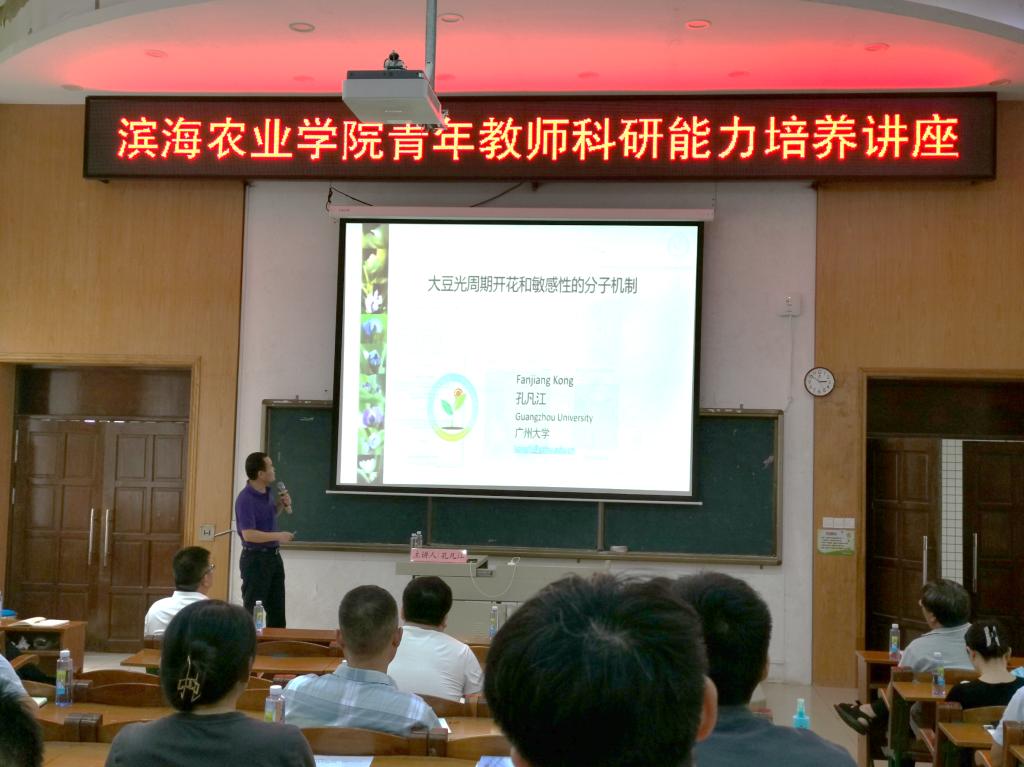 9月27日下午,滨海农业学院组织开展了2023年青年教师科研能力培养讲座。会议邀请了广州大学孔凡江教授作“青年教师如何开展科研工作”的专题报告,全院研究生导师和青年教师近100人参加,会议由滨海农业学院院长郑殿峰主持。