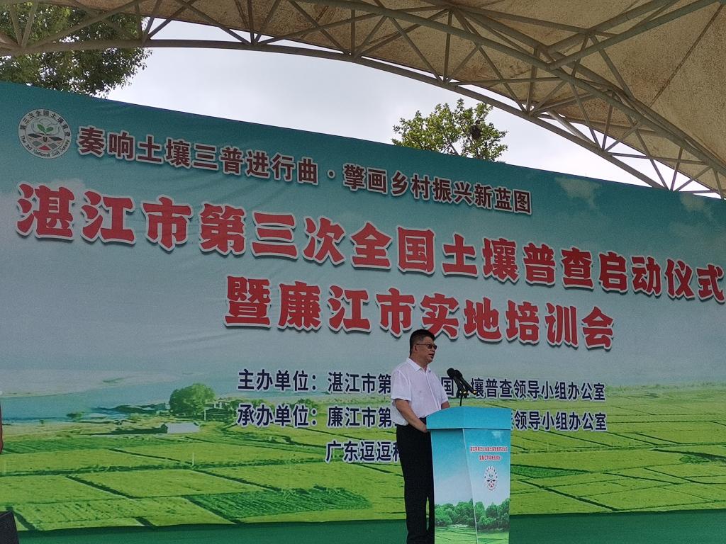 8月24日,湛江市第三次全国土壤普查启动仪式暨廉江市实地培训会在廉江市鳄鱼公园举行。广东省农业农村厅二级调研员卢茂权,湛江市政府副秘书长张国强,廉江市委书记陈恩才,副市长韩阳,湛江市及各县(区)农业农村部门相关人员、土壤普查采样技术支撑单位、相关农技人员等参加了启动仪式。今年会官网作为广东省第三次全国土壤普查省级技术支撑单位,滨海农业学院院长郑殿峰、副院长马驿、郑超副教授、党政办王继全参加了启动仪式。