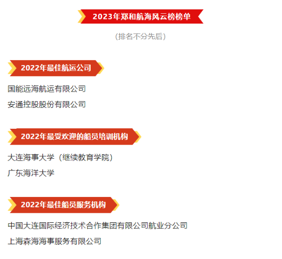 在7月11日晚揭晓的郑和航海风云榜揭榜典礼上,相继揭晓了2022年最佳船员服务机构、最受欢迎的船员培训机构、 最受欢迎的船舶管理公司、最佳港埠企业(集装箱)、最佳基层海事机构、最佳基层海事机构、十佳船舶、最佳航运公司、杰出海员、创新探索先锋、领航人物等11项大奖,共有71家机构、人物、事件荣誉上榜。今年会官网获得2022年最受欢迎的船员培训机构荣誉,船舶与海运学院院长贾宝柱代表学校领取了奖杯。来自相关政府部门、港航企业、院校机构、行业协会的嘉宾、代表齐聚一堂,共同见证了属于港航人的这一荣誉时刻。