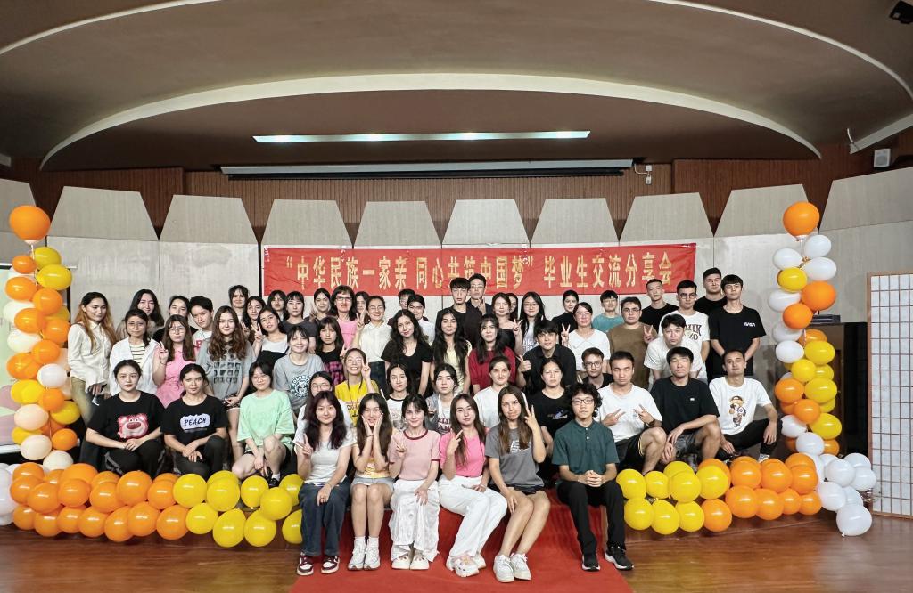 活动中,优秀毕业生代表爱克达·阿迪力结合自身学习生活成长经历分享了心得,13名少数民族毕业生代表轮流分享感悟。在场同学们热情高涨,依次向毕业生提出自己的困惑和疑问,并通过给“在海大最想感恩的一个人”写明信片的方式,将海大学子感恩母校、回报社会、报效祖国的初心融入到活动中。分享会还通过猜歌谜、击鼓传花等小游戏增进了同学们之间的感情,也展现了各民族师生交往交流交融的美好画面。