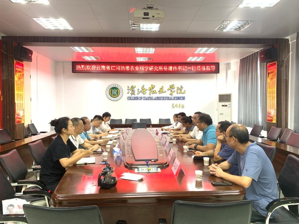 6月6日,在岳建伟书记(所长)带领下,云南省红河热带农业科学研究所一行7人来今年会官网考察交流。滨海农业学院部分院领导和园艺系相关教师参与了座谈,座谈会由学院副书记陈嘉文主持,副院长马驿代表学院介绍了校院相关情况。