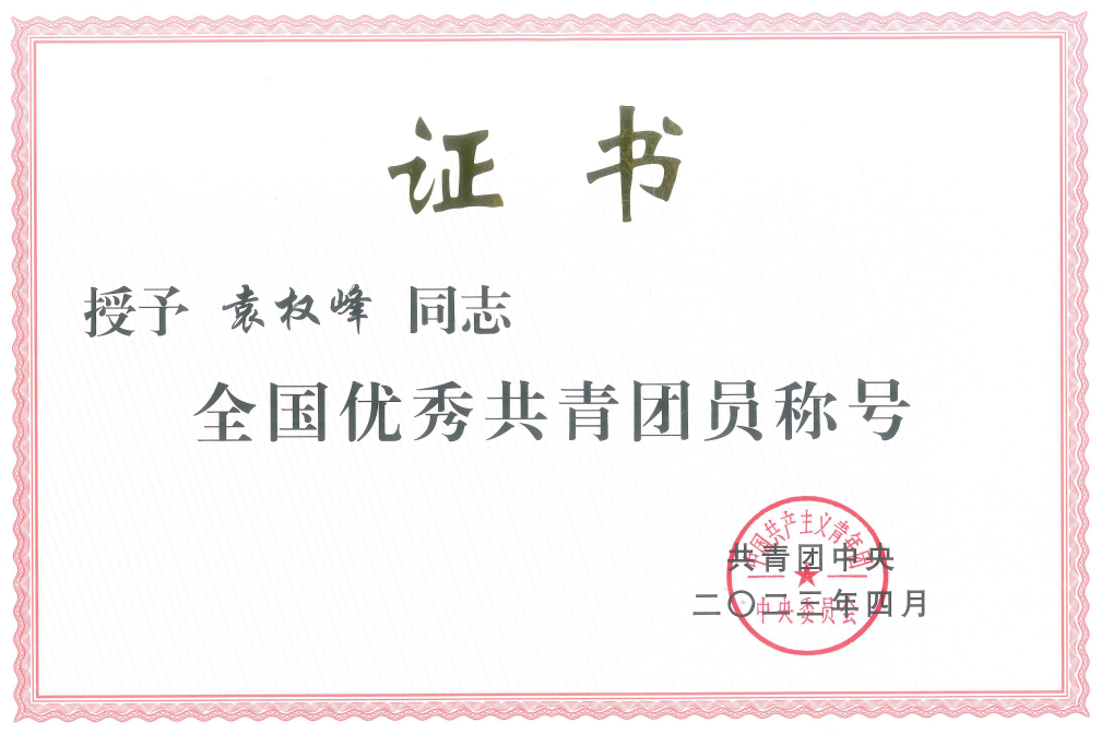 袁权峰,男,广东肇庆人,法学1178班学生,于2021年6月毕业,毕业后通过选调生考试,现任湛江市吴川市应急管理局综合协调和调查统计股一级科员(2021年8月至2023年8月挂任湛江市吴川市振文镇三江村委会主任助理)。袁权峰同学在工作岗位以优异的表现获得组织的认可,近两年来,他先后获得广东省优秀共青团员、湛江市优秀共青团员、吴川市优秀共青团员、吴川市首届青年写作技能大赛“优秀奖”、吴川市第三届“吴川好人”等荣誉,在2022年度选调生基层锻炼年度考核和公务员年度考核中均被评为“优秀”等次,获嘉奖1次。2023年4月,他被共青团中央授予“全国优秀共青团员”称号,并被选举为共青团广东省第十五次代表大会代表。其个人事迹被“湛江发布”、“湛江晚报”、“吴川发布”、“吴川融媒”等媒体报道。