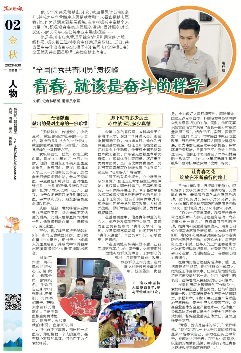 法政学院2021届毕业生,法学1178班袁权峰同学被评为“全国优秀共青团员”,个人事迹被湛江晚报作专题报道。