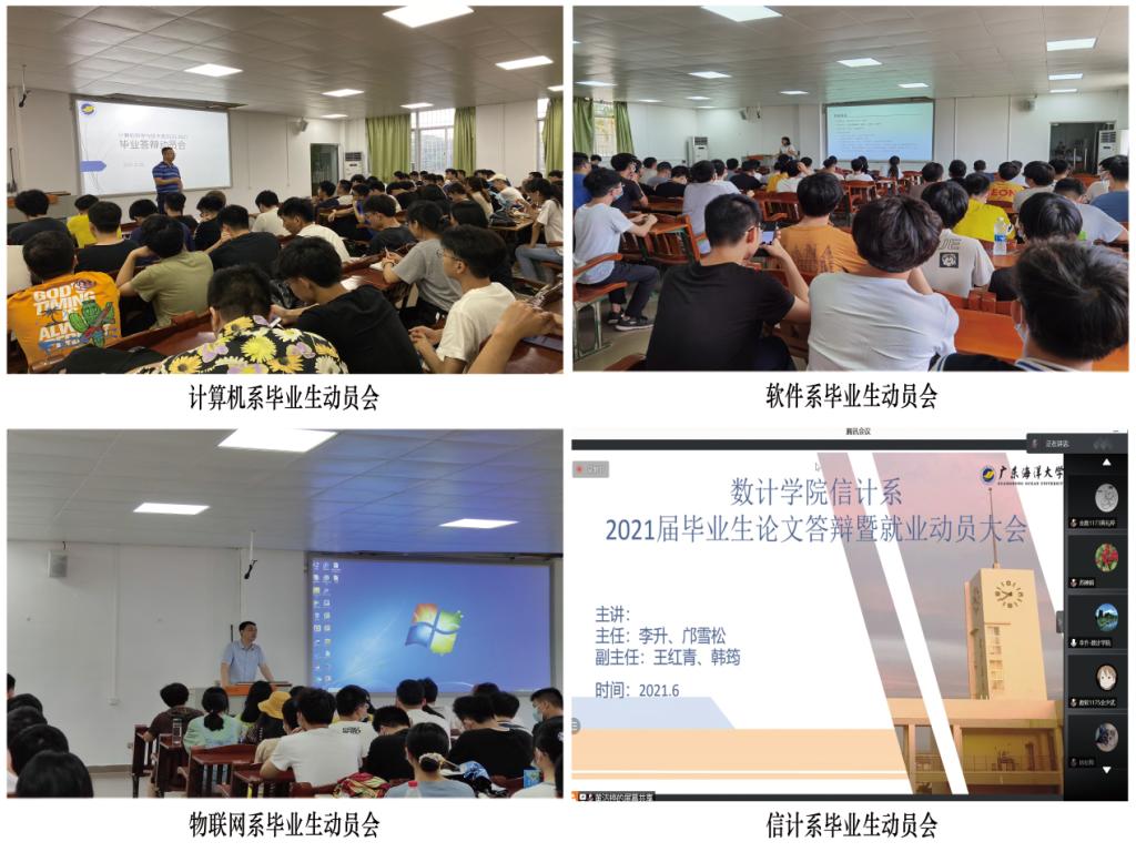 6月2日-3日,学院计算机科学与技术等四个系组织毕业生专题动员会,各系主任谈专业建设与发展,引导毕业生珍惜学习成果,以最好状态做好论文答辩和就业工作。6月5日,学院严格做好疫情防控措施,采取线上和线下结合的形式,确保答辩质量,完成了毕业生答辩工作。