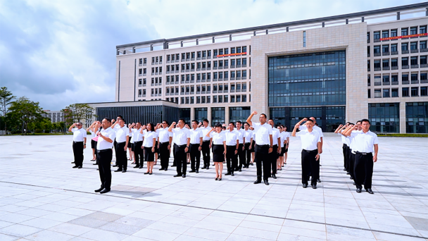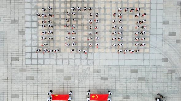 大会结束后,全体党员干部来到校区北门广场,在洪鹏志的带领下,全体党员干部举起右手,重温了入党誓词。随后,全体党员干部先后在校区北门广场、足球场分别摆出“100”和党徽的队形,挥舞着手中的党旗,深情齐唱《不忘初心》,表达对党和祖国的热爱和感恩之情。