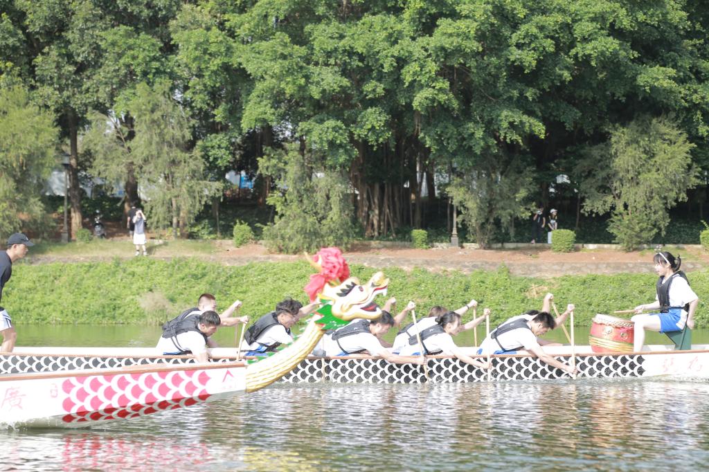 本次比赛的竞赛项目为男女混合12人龙舟200米直道赛,来自17个学院的238名龙舟健儿激情挥桨,上演“蛟龙”破浪的视觉盛宴,诠释了“同舟共济、奋发有为”的新时代龙舟精神。