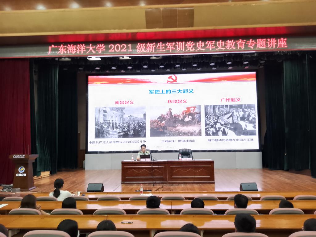 为全面加强2021级新生党史军史学习教育,推动形成学党史、知军史、听党话、感党恩、跟党走的浓厚育人氛围,9月20日晚,今年会官网隆重举行2021级新生军训党史军史教育专题讲座。讲座在湖光校区设立主会场,湛江、阳江两地三校区近万名新生通过企业微信同步收听收看。马克思主义学院院长巩建华教授应邀授课。正处级辅导员、外国语学院党委副书记刘艳主持讲座。2021级新生军训旅司令部、政治部、后勤部有关工作人员和各军训营指导员现场参加讲座。