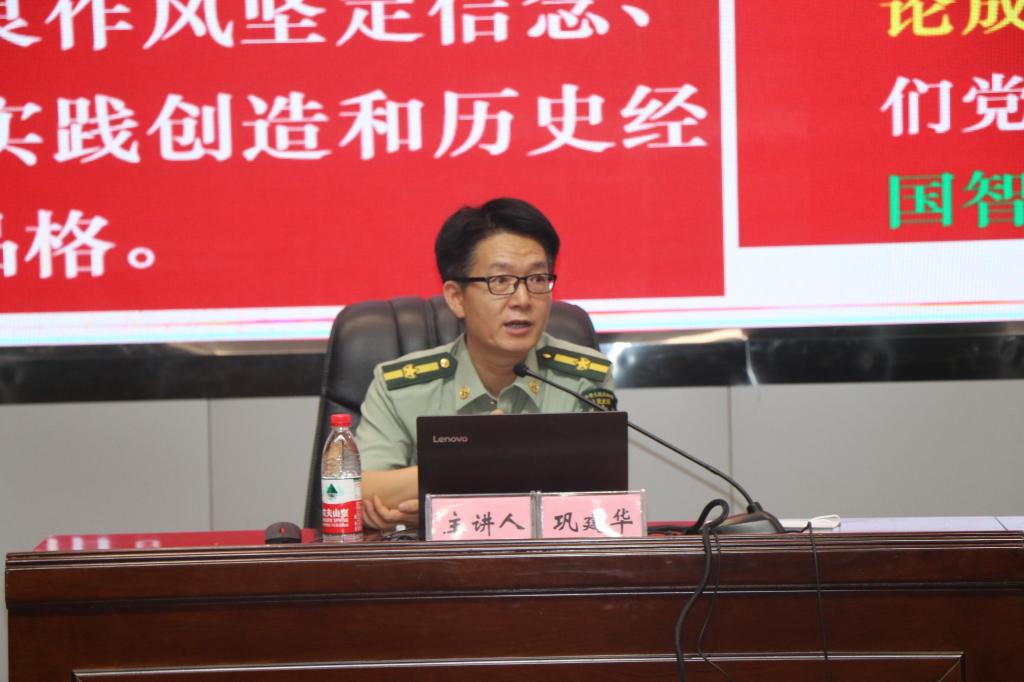 巩建华以《知来路启新程——从党史军史中汲取砥砺前行的力量》为题,系统解读了习近平总书记在庆祝中国共产党成立100周年大会上的重要讲话与在党史学习教育动员大会上的重要讲话精神。他用严密的逻辑和鲜活的事例,生动展现了中国共产党100年来苦难辉煌的四个历史时期;重点讲解了我们党思想建党、政治建军的独特优势,指出共产党人的精神血脉是建军立军、强军兴军的精神之源、力量之源、灵魂之源,红色基因是人民军队战无不胜、永不变质的根本所在;深刻阐明了“党指挥枪”是建军之本、强军之魂,是人民军队不断发展壮大的根本保证。巩建华勉励同学们要学党史、知军史、听党话、感党恩、跟党走,将“小我”融入“大我”,披荆斩棘,继往开来,在实现中华民族伟大复兴的实践中书写别样的精彩人生。