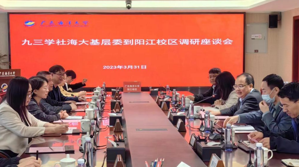 为深入了解阳江校区建设情况,增进不同校区九三学社社员之间的交流学习,3月31日上午,九三学社海大基层委主委王丹率20余名九三学社社员赴阳江校区开展调研,并与校区党委副书记、管委会常务副主任周昌仕,组织人事部负责人李鹏虹、综合事务部负责人毛琪、校区图书馆负责人李中及3位阳江校区九三学社社员开展座谈交流。