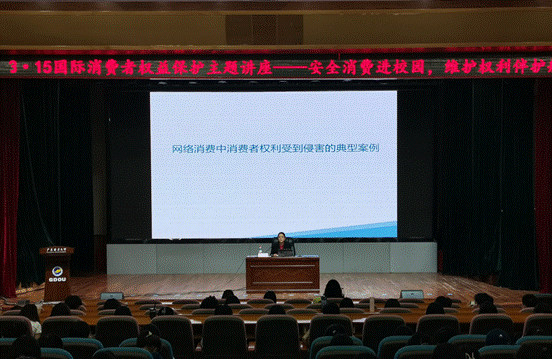 为提高大学生消费群体的自我保护意识,引导大学生科学、合理、文明消费,3月22日晚,学校在湖光校区教学主楼多功能厅举行以“安全消费进校园,维护权利伴护航”为主题的消费者权益保护法普法讲座。本次活动由校长办主办、法律援助协会承办,法政学院教师曹亚君博士主讲。300余名师生到会聆听了讲座。