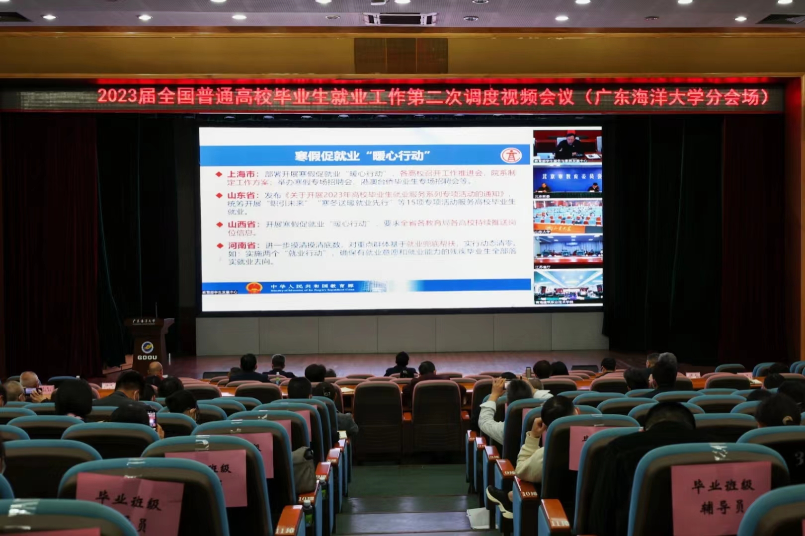 为深入贯彻党的二十大精神,认真落实党中央、国务院“稳就业”“保就业”决策部署,抢抓春季开学后促就业关键期,2月28日下午,2023届全国普通高校毕业生就业工作第二次调度视频会议顺利召开。今年会官网在湖光校区多功能厅设立分会场,学校党委副书记林晓敏,学生工作部、研究生工作部等部门负责人,各学院书记(或院长)、分管学生工作领导和全体2023届毕业班辅导员等60余人参加了会议。