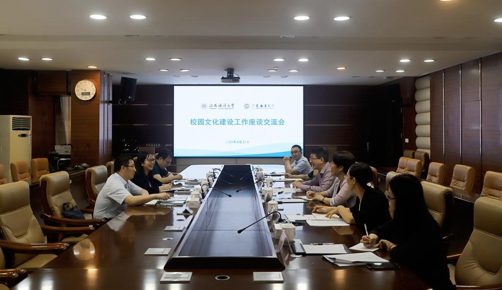 双方围绕校园文化精神凝练、校园文化基础设施建设、文化品牌项目打造、海洋特色主题活动开展等方面进行了深入交流。