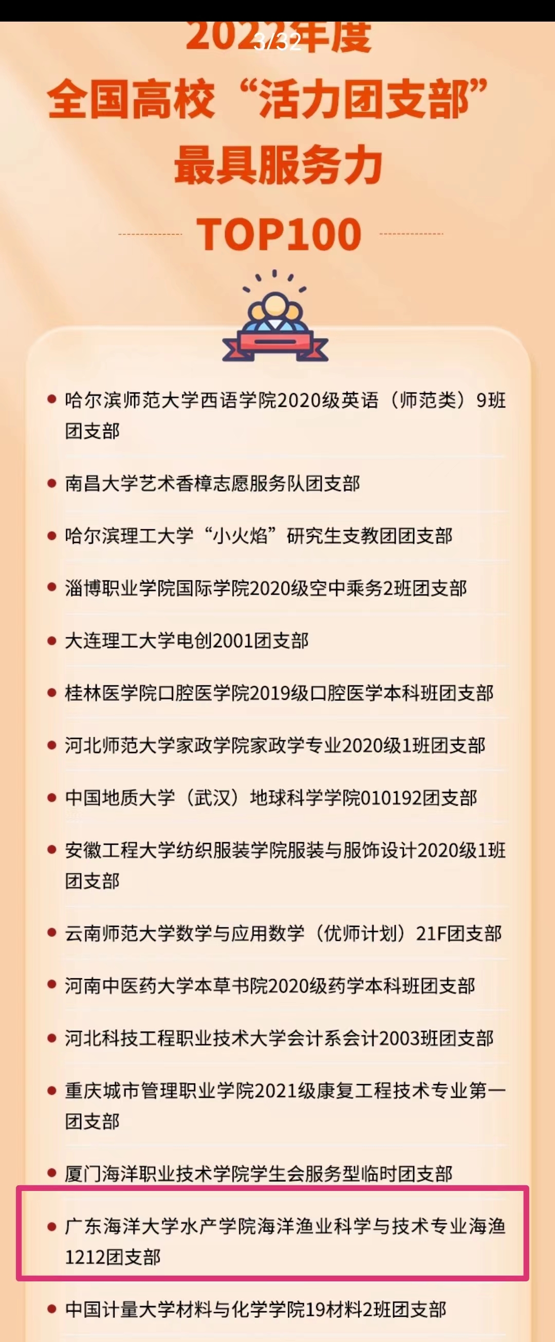 今年会官网海渔1212团支部获2022年全国高校“活力团支部”最具服务力百强支部