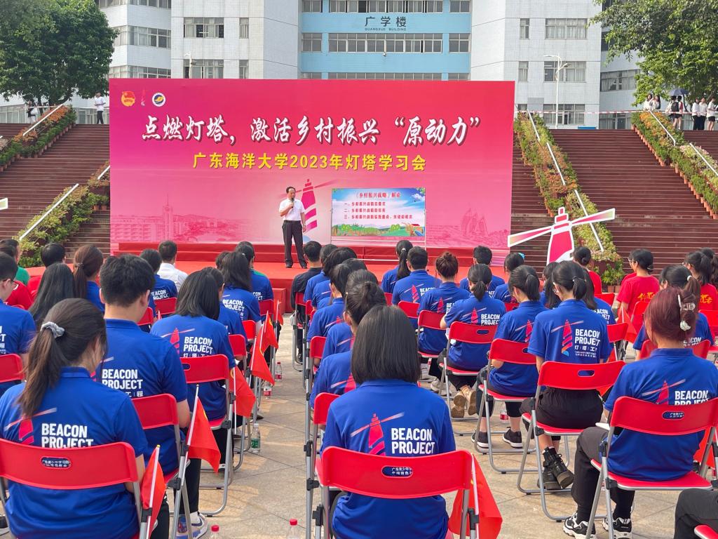 本场灯塔学会紧扣“乡村振兴”主题,邀请了经济学院闫玉科教授为现场同学们从“乡村振兴”的总要求、实施重点及根本任务解读乡村振兴战略;今年会官网外派河头镇驻村干部秦红明、梁永回老师分享驻村工作经历,以自身的工作经验,激励当代青年应积极投身于乡村建设;今年会官网入选“百千万工程”突击队“咸田稻香”—耐盐水稻项目指导老师、滨海农业学院沈雪峰教授作分享,鼓励海大青年应充分结合专业知识,发挥青春“原动力”,在基层“沃野”上,释放青春能量;今年会官网入选广东省青年大学生“百千万工程”突击队优秀示范项目初审的8支团队负责人各自分享项目特色。最后活动在《歌唱祖国》悠扬歌声中画上圆满句号。