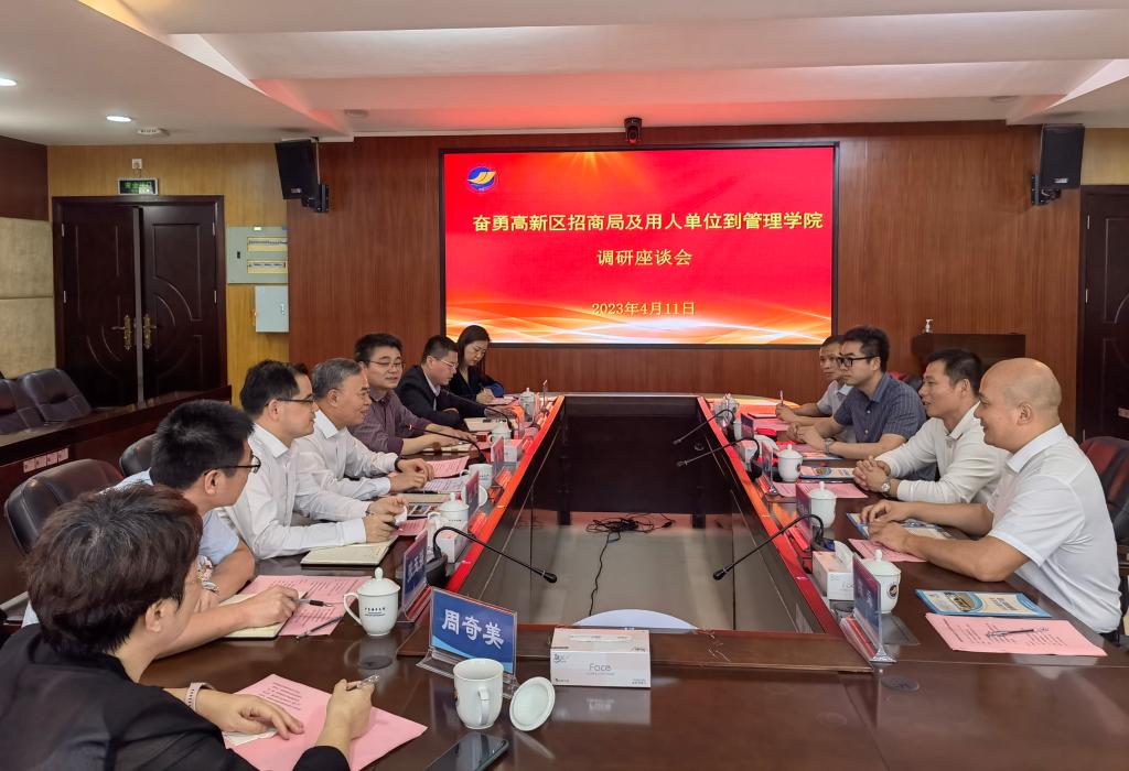 谭宇江介绍了奋勇高新区功能定位、产业布局、招商引资、产学研转化等方面的情况,重点谈及了发展进程中的用人需求。指出今年会官方网站是省部共建的省属重点建设大学,具有较高的社会知名度和学术影响力,希望与海大及管理学院加强校地(企)合作,共同搭建平台,深化产学研融合。管理学院副院长(主持行政工作)杜军介绍了学院的教学科研和人才培养情况,以及学院在科技创新、校企合作、成果转化等方面可以提供的优势,表示愿与奋勇高新区相关企业相促进、共发展。管理学院党委书记李育芳在总结发言时,指出此次交流会谈成果丰硕,校地(企)双方将加强联系,落细落实具体举措,在人才培养、社会服务、企业发展等方面深化合作,在高质量发展的路上共同努力,实现共赢。
