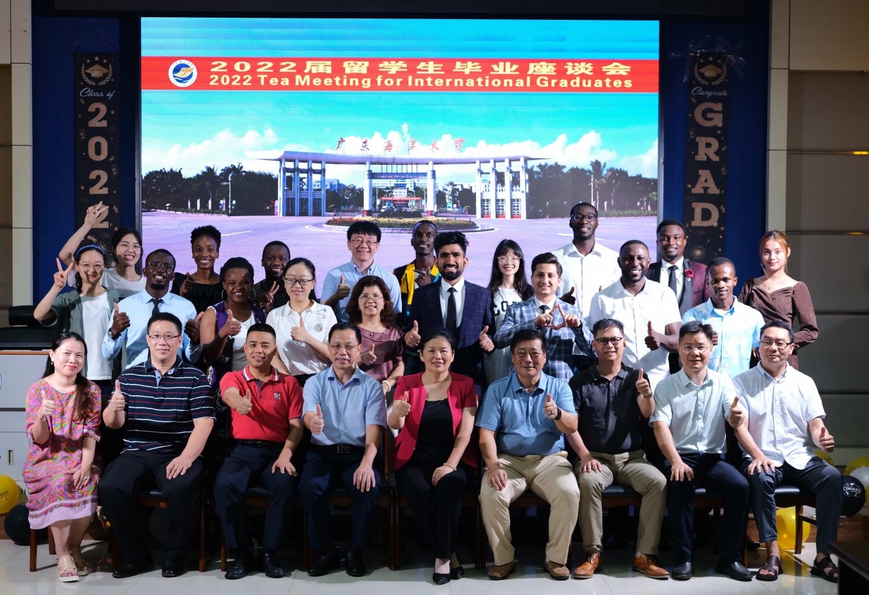 座谈会上,研究生工作部副部长陈汉能祝贺留学生毕业生们圆满完成学业,期待学生们在职业生涯和个人生活中取得更多成就。国际交流与合作处外国专家与留学生管理科科长杨莉、水产学院院长助理陈华谱、食品与科技学院副院长赵云涛、滨海农业学院副院长马驿和电子与信息工程学院、管理学院等单位部门留学生导师及工作人员纷纷发言,表达了对毕业留学生们的美好祝愿及鼓励,对学校国际化发展献言献策。