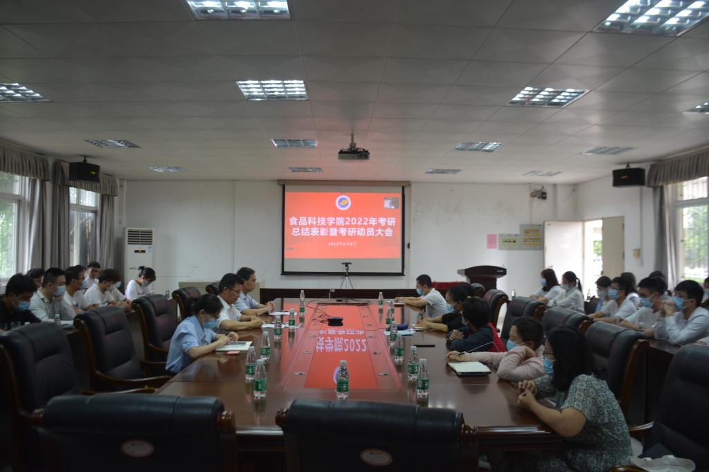 6月8日下午,食品科技学院在第三实验楼A105会议室及腾讯网络平台举行2022年考研考博总结表彰暨考研考博动员会,学院党委书记苏永华、党委副书记丁永成、副院长夏杏洲,各教学系主任、副主任、2018级班主任、辅导员,2022届考研、考博学生代表及2019级有考研意向的学生代表参会,会议由丁永成主持。