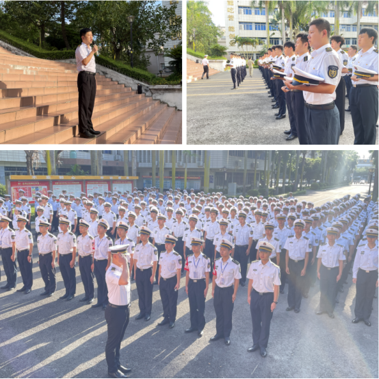 最后,齐昊简要通报了去年以来学院半军事化管理工作所取得的显著成绩,特别强调了学生安全工作的注意事项,要求广大同学,一要志存高远,勤学笃行,努力担负起建设海洋强国的历史使命;二要爱校荣校,爱院荣院,以实际行动助推学校学院高质量发展;三要严以律己,毫不动摇执行好半军事化管理的各项规定。