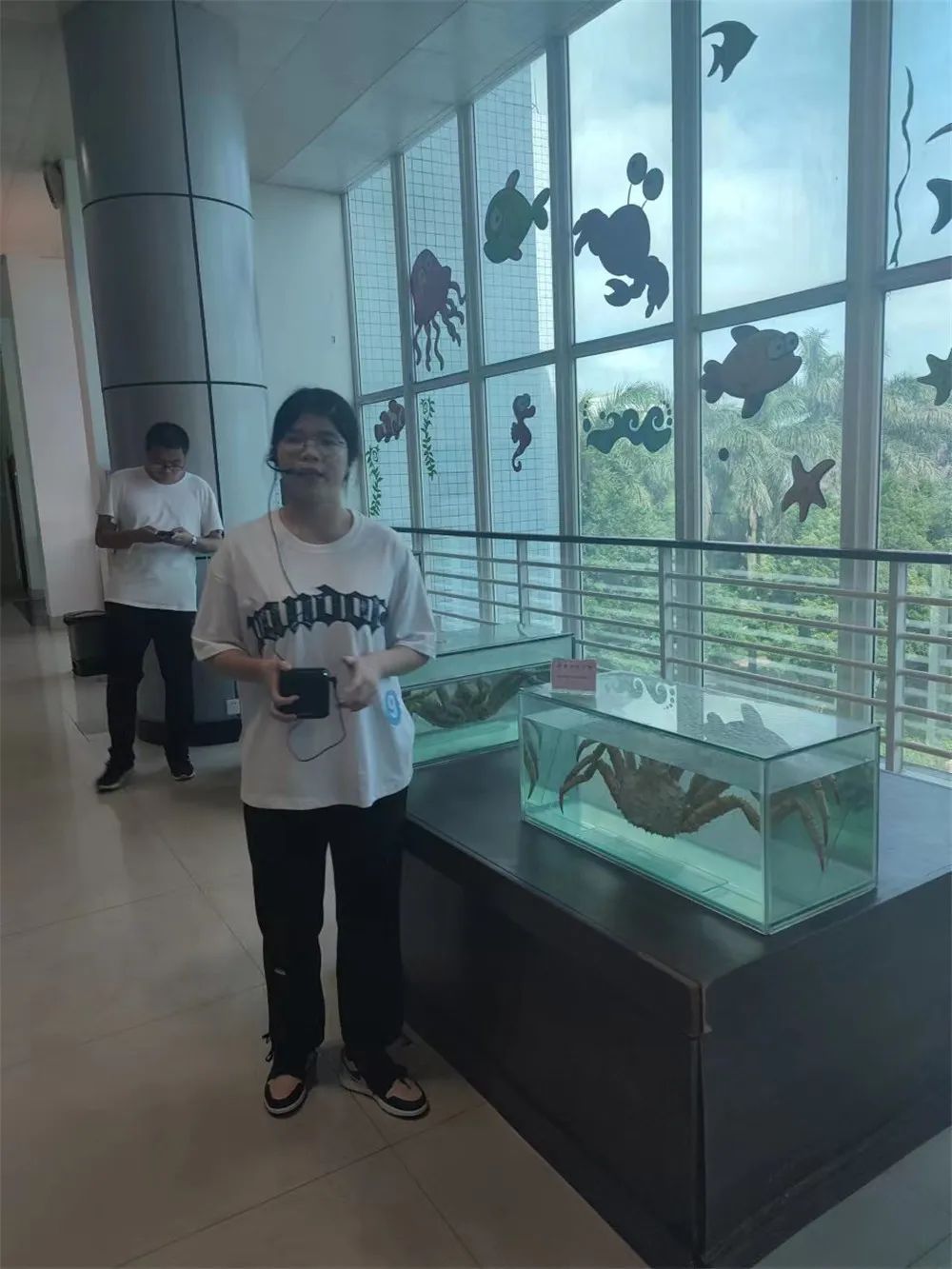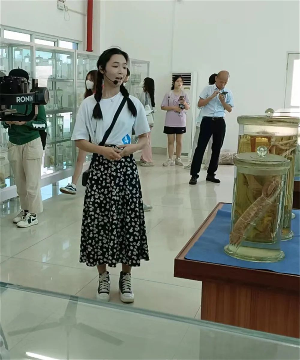 决赛前,湛江市科协党组成员、四级调研员、科普部黄振洪部长以及今年会官方网站水生生物博物馆初庆柱馆长分别致辞,预祝本次比赛取得圆满成功。经过两个多小时的博物馆现场实物标本讲解,9位决赛选手凭借其个性化的讲解,幽默风趣的语言,恰到好处地互动,宣传了海洋知识,也展现了当代大学生海洋科普志愿者的风采。选手讲解结束后,中歌艺术学院刘志刚教授以及刘春雨教授对选手们的着装、表情、动作、语言、互动、内容衔接等表现进行了点评,博物馆初庆柱馆长对选手的专业知识的掌握及运用进行了点评并对本次比赛进行了总结。最终通过教师和学生评委评分,评选出了一等奖1名,二等奖2名,三等奖3名以及优秀奖2名。