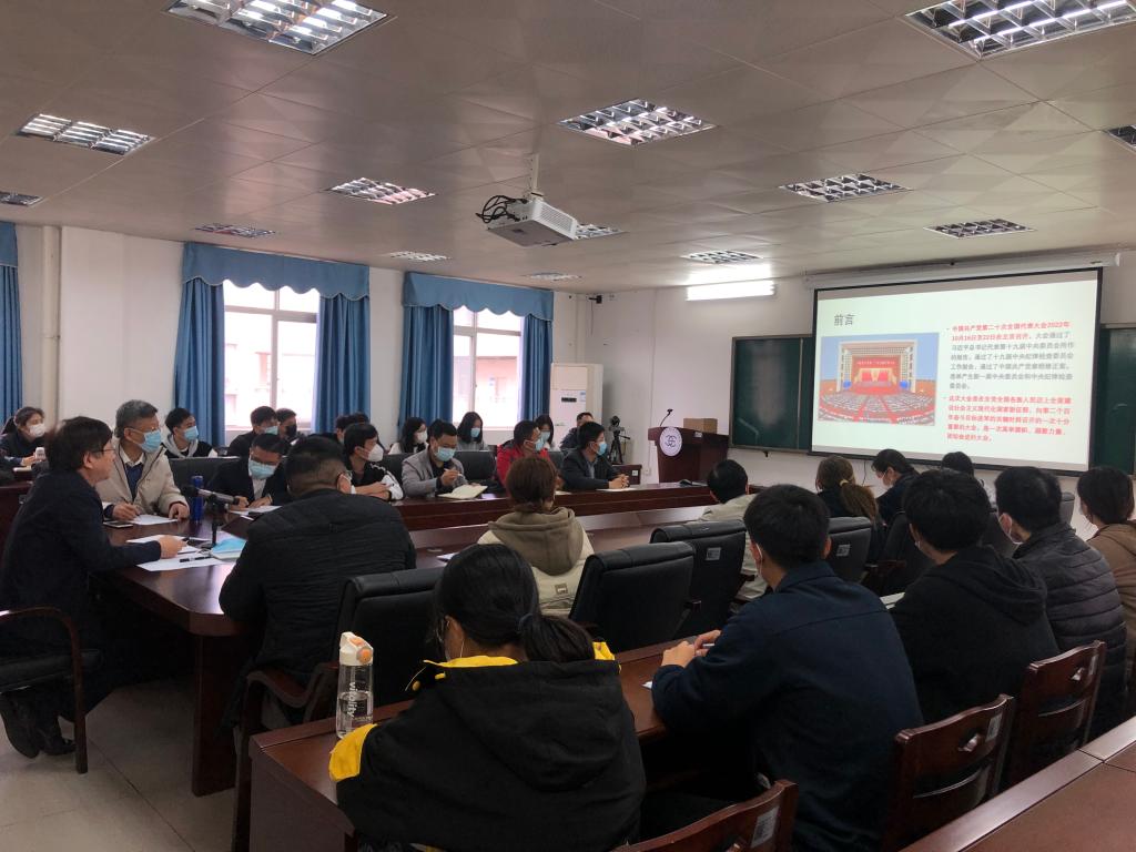 刘东超强调,党的二十大为我们高校师生提供了世界观和方法论,发布了动员令和任务书,我们要提高政治站位,坚持以习近平新时代中国特色社会主义思想为指导,把学习贯彻党的二十大精神,与学习贯彻习近平总书记关于教育的重要论述紧密结合起来,团结奋斗,以实际行动有力回答好“培养什么人、如何培养人、为谁培养人”这个教育的根本性问题。