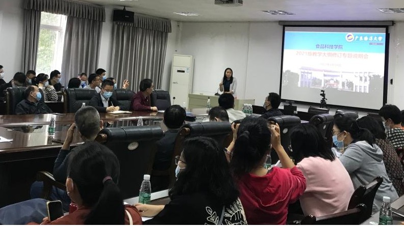 4月20日下午,食品科技学院召开2021版本科课程教学大纲修订专题辅导暨安全工作大会,会议由学院党委书记苏永华主持,学院领导、全院教职员工,其中阳江校区教职工通过在线方式参加了会议。