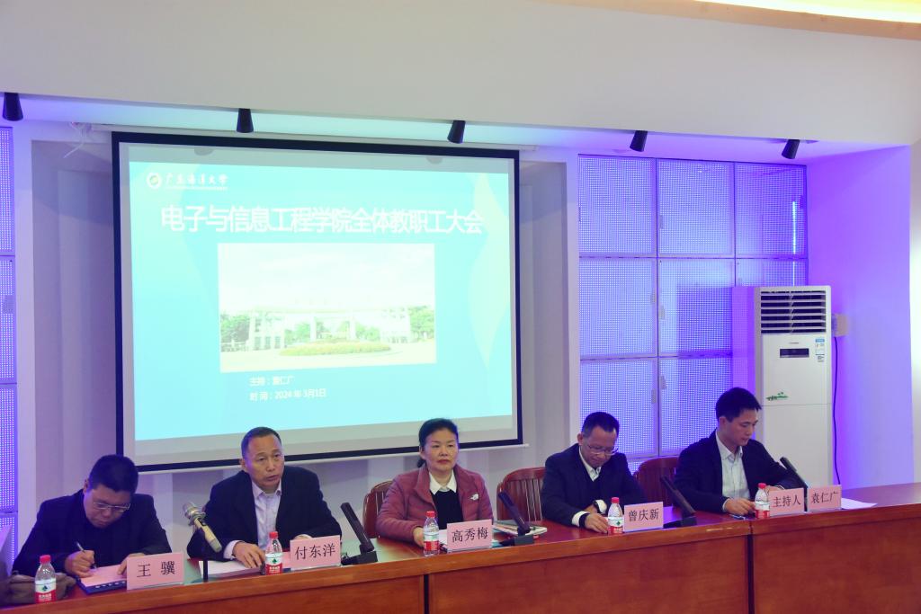 3月1日上午,电子与信息工程学院在霞山校区图书馆报告厅召开2024年春季新学期全体教职工大会。学校副校长高秀梅出席会议,党委组织部部长曾庆新、学院党政领导及全体教职工参加会议。会议由学院党委书记袁仁广主持。