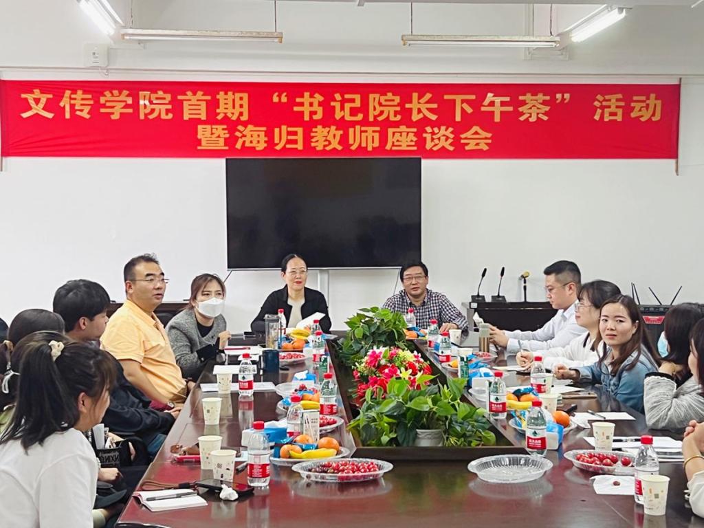 3月19日下午,文学与新闻传播学院在广学楼713室举行首期“书记院长下午茶”活动暨海归教师座谈会,了解海归青年教师的思想、工作、学习和生活状况,聆听他们对个人职业和学院发展的意见建议。学院党委书记张艳梅、院长邓建、副院长刘刚出席座谈会,刘钟瞳等10名海归教师参加座谈会。
