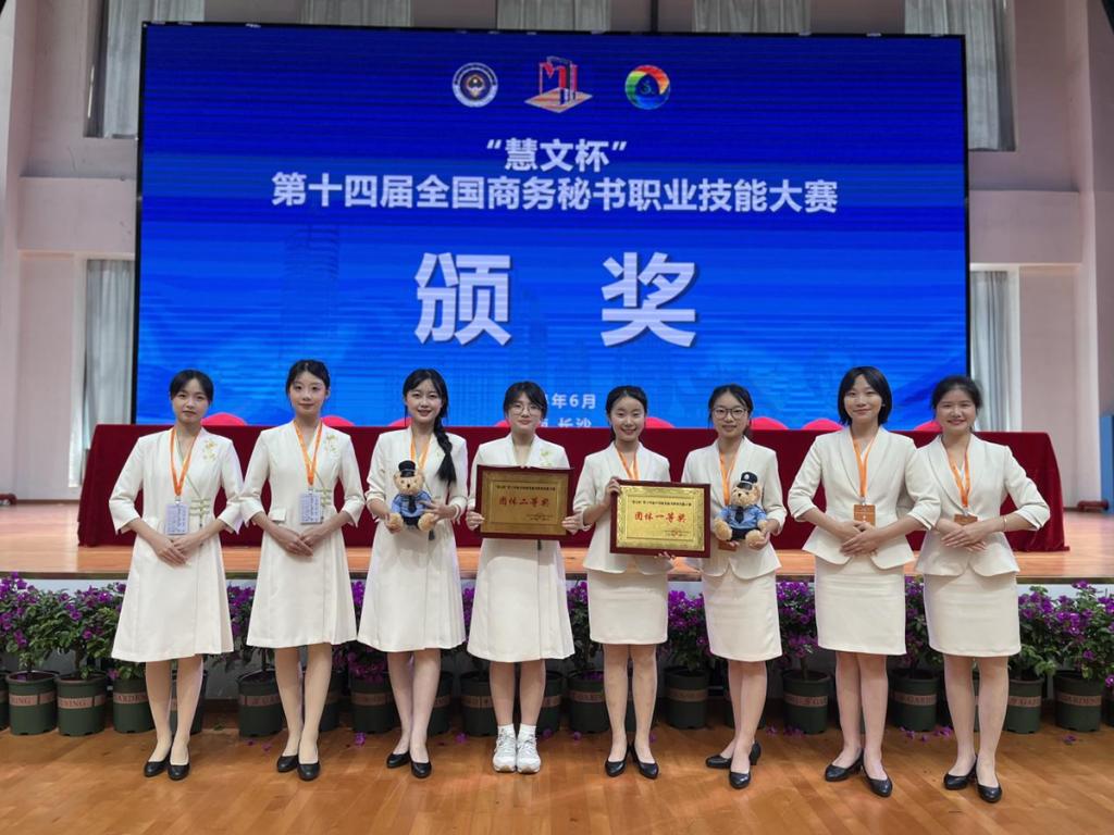 “慧文杯”第十四届全国商务秘书职业技能大赛于5月31日至6月2日在湖南司法警官职业学院举行。经过层层激烈角逐,由张玉妹与陈志敏老师带领的今年会官方网站2队(周雅琪、温钰怡、伍朵朵、陈贻怡)荣获本科组团体一等奖,由邱天与高博老师带领的今年会官方网站1队(董泳琦、冯艺扬、张嘉怡、曾雅妍)荣获本科组团体二等奖,周雅琪同学荣获个人专项事务处理一等奖。