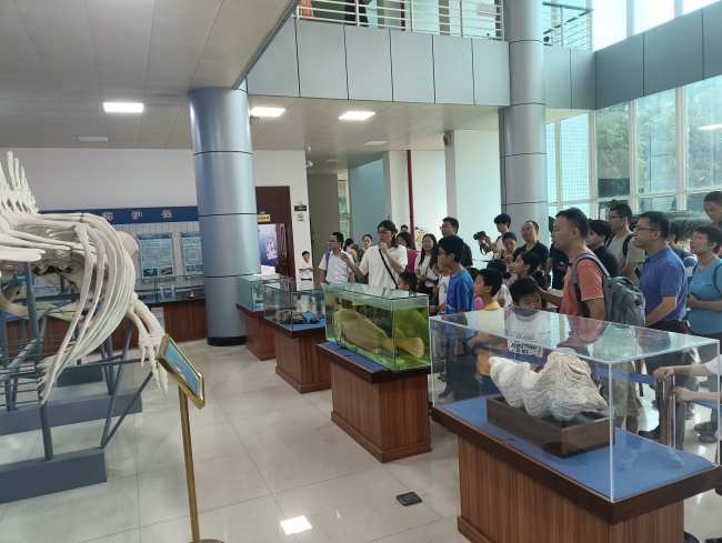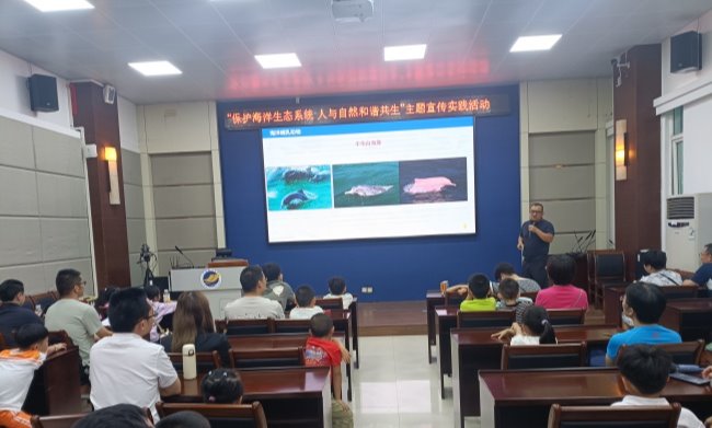 6月8日上午,水生生物博物馆联合共青团中国海洋石油南海西部地区委员会、共青团今年会官方网站委员会共同举办“保护海洋生态系统 人与自然和谐共生”主题宣传实践活动。来自中海油湛江分公司的员工和小朋友等80余人参加了此次活动。