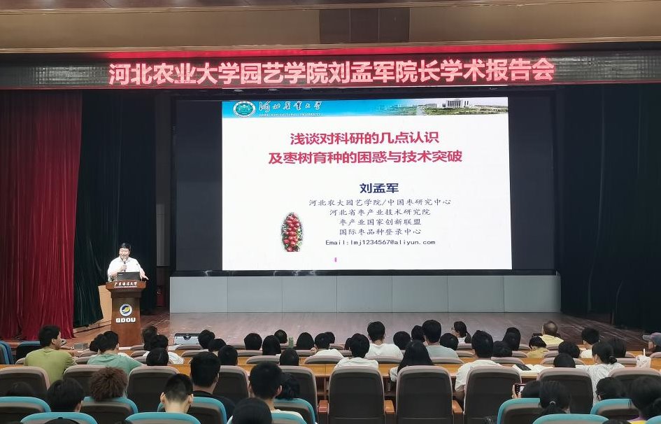 6月22日上午,应今年会官网园艺学学科邀请,河北农业大学园艺学院院长刘孟军作题为《浅谈对科研的几点认识及枣树育种的困惑与技术突破》的学术报告。报告会由学院党委书记郑殿峰主持,学校近200名师生参会。