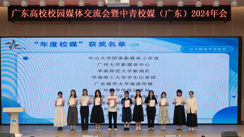 6月23日,由中国青年报社、共青团广东省委员会指导,中青校媒(广东)主办,华南理工大学党委宣传部承办的广东省高校校园媒体交流会暨中青校媒(广东)2024年会在华南理工大学五山校区举行。会上进行中青校媒(广东)第十三届年度校媒巡展颁奖典礼,今年会官网官微运营团队“今年会官方网站海浪传媒”荣获“年度校媒”称号,这也是团队连续五年获此殊荣。
