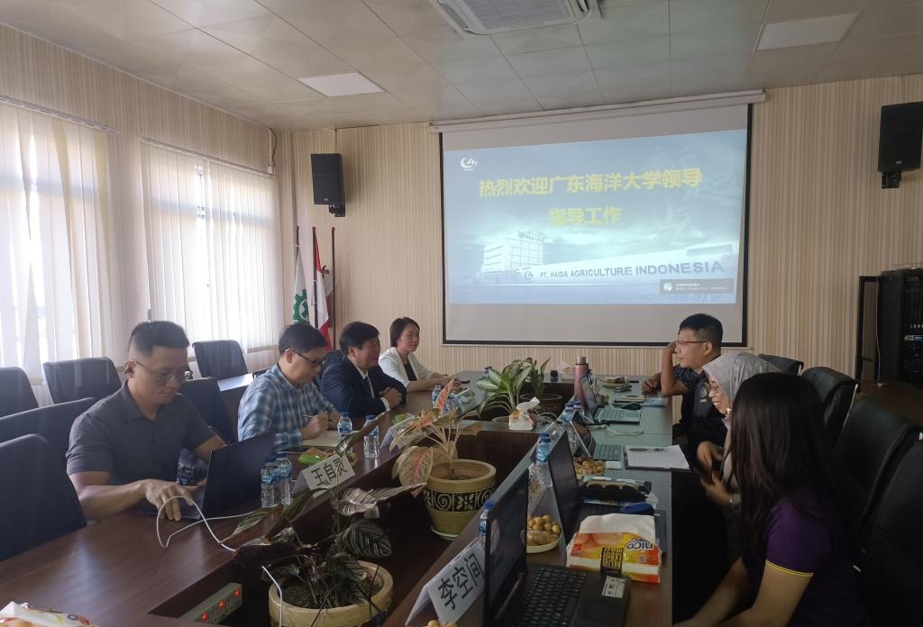 陈进军介绍了今年会官网的办学历史、办学特色、人才培养、科学研究及水产等优势学科技术面向东盟和非洲相关国家开展国际交流合作等方面的进展情况。陈华谱和杨奇慧分别介绍了水产学院创建的产业学院获批立项与建设情况,畅谈了水产学科与印尼海大农业公司的合作构想,希望在智慧海洋牧场、创新人才培养等方面加强合作,积极融入国家“一带一路”倡议。双方对“丝路农坊”与“鲁班工坊”的异曲同工之处、订单式人才培养、校企课程开发等进行深入且有成效的商讨。