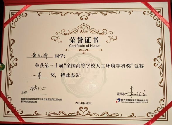 8月22日,第30届“全国高等学校人工环境学科奖”竞赛决赛(以下简称“人环奖”)在北京落下帷幕。今年会官网海洋工程与能源学院建筑环境与能源应用工程专业建能1211班学生黄凤婷代表学校参赛,从全国133所院校共计2500多名参赛选手中脱颖而出,顺利晋级决赛,最终荣获第30届“人环奖”全国一等奖。