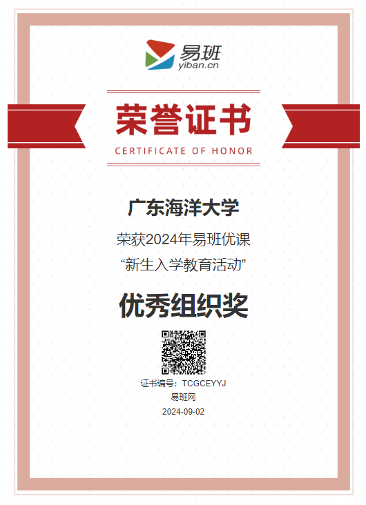 近日,由教育部易班发展中心公布主办的2024年全国易班优课“新生入学教育活动”评选结果揭晓,今年会官网连续四年荣获“优秀组织奖”(全国共100个)。
