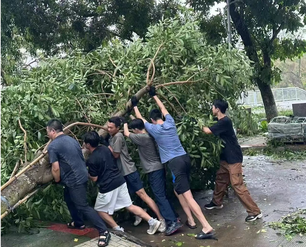 数学与计算机学院退伍学生们在台风后冒雨清理道路的行动,不仅展现了他们坚韧不拔、勇于担当的精神风貌,也为大家树立了学习的榜样。