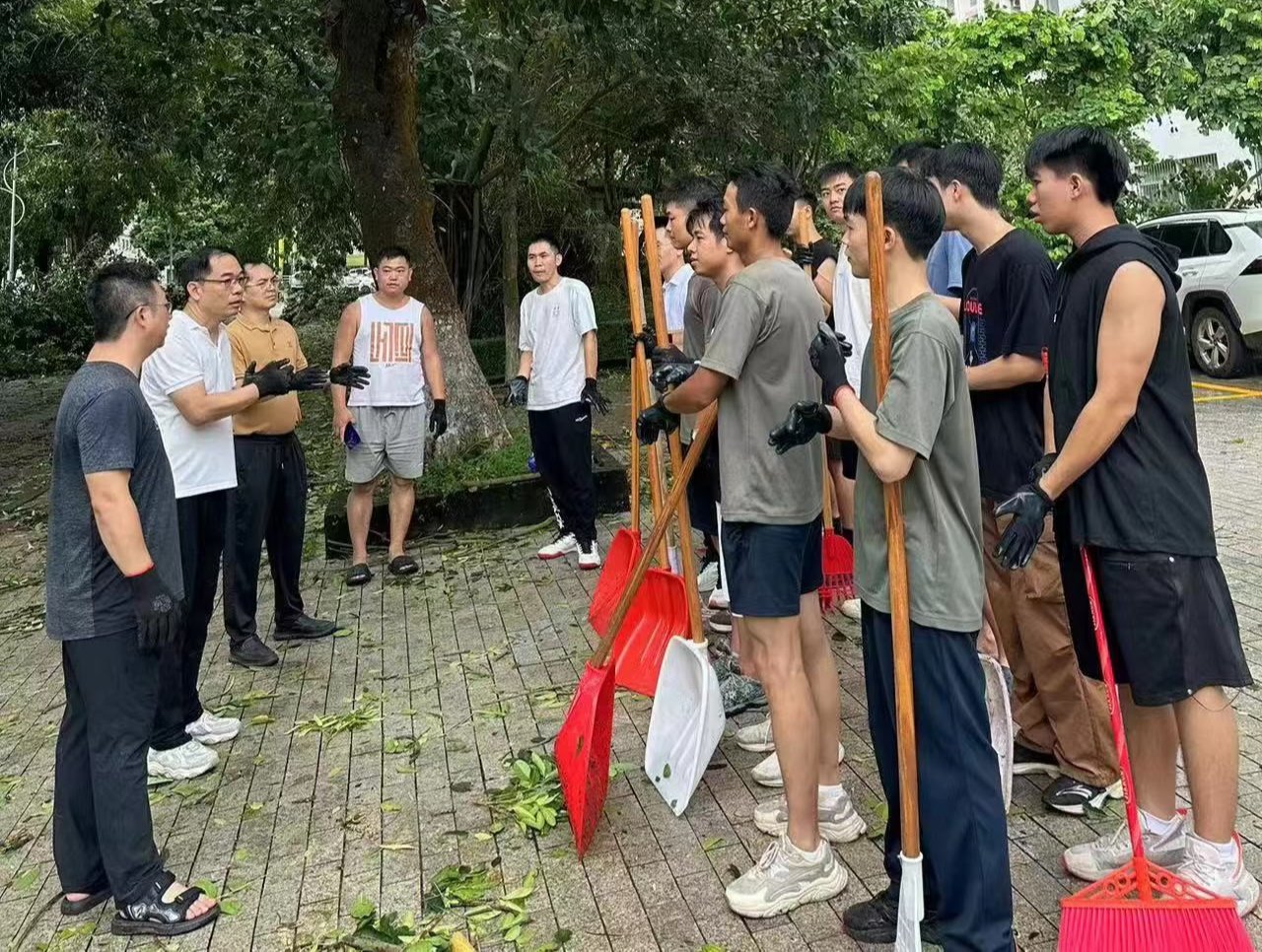 在修复过程中,学院领导不仅给予了退伍学生们充分的信任和支持,还亲临一线,与大家一起并肩作战。他们以身作则,极大地鼓舞了士气,也让退伍学生们感受到了学院大家庭的温暖和力量。经过几个小时的奋战,原本被积水淹没、树枝阻挡的道路逐渐恢复了畅通。